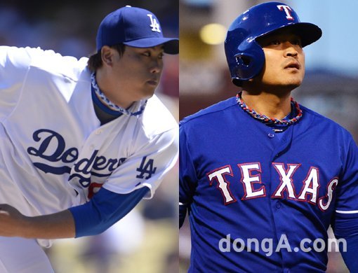 LA 다저스 류현진-텍사스 레인저스 추신수. 동아닷컴DB