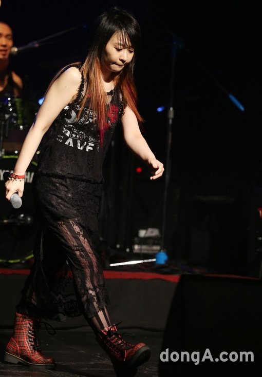 체리필터의 보컬 조유진이 11일 오전 서울 마포구 롤링홀에서 열린 신곡 '안드로메다' 발표 및 프레스데이에서 참석하고 있다. 한편, 체리필터는 지난 2002년 '낭만 고양이'로 록의 부활을 알렸다.