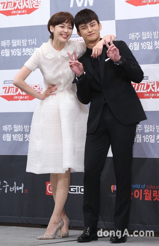 배우 이하나(왼쪽)와 서인국이 11일 오후 서울 강남구 임피리얼팰리스호텔에서 열린 케이블채널 tvN ‘고교처세왕’ 제작발표회에서 포토타임을 하고 있다.