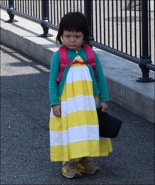 공개된 사진에는 추사랑이 노란 원피스에 초록색 카디건을 입고 가방을 멘 채 홀로 선 모습이 담겨 있다. 특히 추사랑은 불만이 가득한 듯한 표정을 해 웃음을 자아냈다.