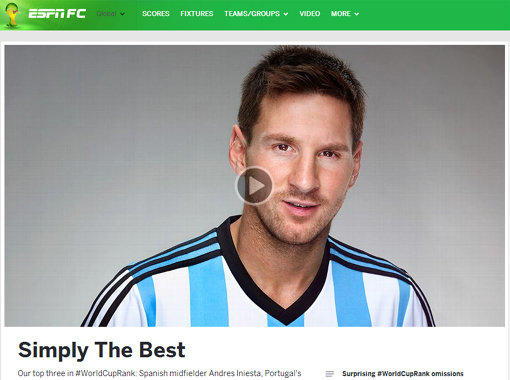 ESPN은 지난달 부터 이번 월드컵 출전 선수 중 ‘톱 50’을 선정, 역순으로 공개해 왔다. 12일 영예의 1위가 발표됐고 메시가 이름을 올렸다.