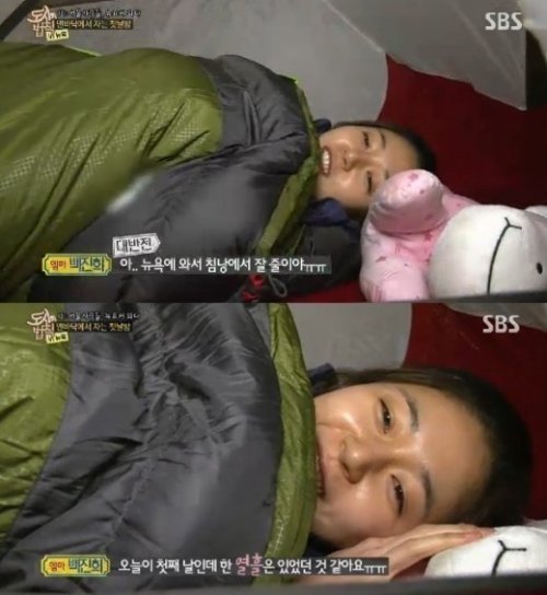 백진희는 “뉴욕에 와서 침낭에서 잘 줄이야”라며 “오늘이 첫째 날인데 한 열흘은 있었던 것 같다”고 말해 웃음을 자아냈다.