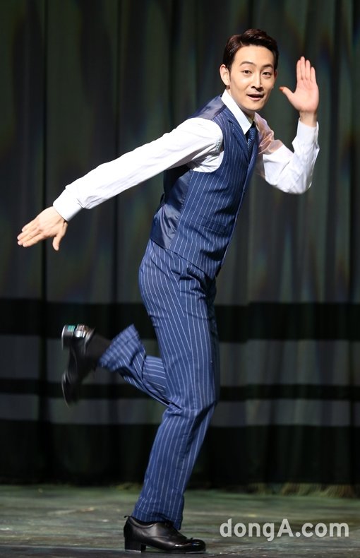 그룹 트랙스의 제이가 12일 오후 서울 중구 충무아트홀 대극장에서 뮤지컬 싱잉인더레인 프레스콜에서 하이라이트를 시연하고 있다.