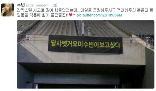 수빈은 12일 자신의 트위터에 “잘 지내시나요? 정말 많이 보고 싶네요. 소심이 너무 늦었죠. 저는 수술 잘 마무리하고 열심히 재활치료하고 있습니다”라는 글을 게재했다.