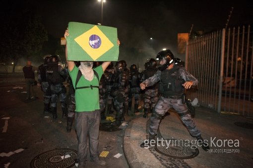 화려하게 개막한 브라질 월드컵 뒤로 여전히 월드컵 반대 시위자들의 시위가 계속되며 명암이 엇갈리고 있다.