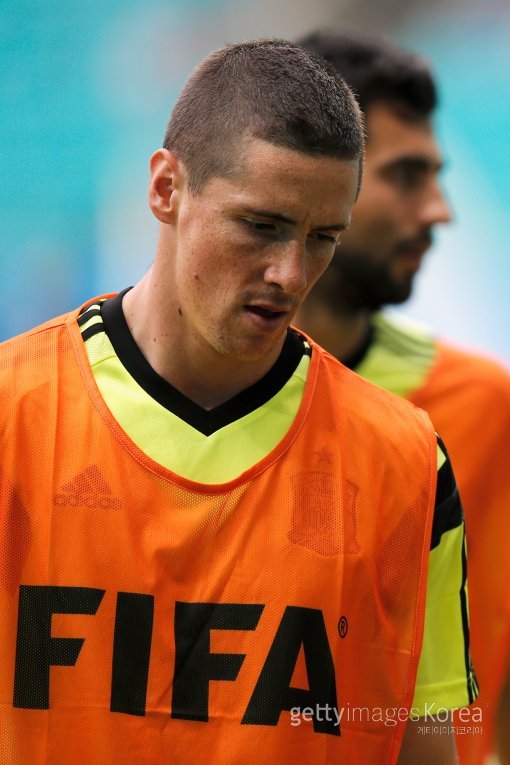 13일(한국시간) 브라질 사우바도르에서 스페인 축구대표팀 페르난도 토레스가 네덜란드와의 경기에 대비해 훈련에 참가하고 있다.