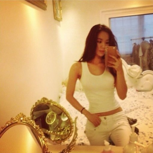 사진에는 침실에서 거울을 보며 포즈를 취한 김희정의 모습이 담겨 있다. 김희정은 하얀색 민소매 티와 바지를 입고 아름다운 S라인을 뽐내고 있다. 아역배우 시절에 비해 몰라보게 성숙해진 비주일이 눈길을 사로잡는다.