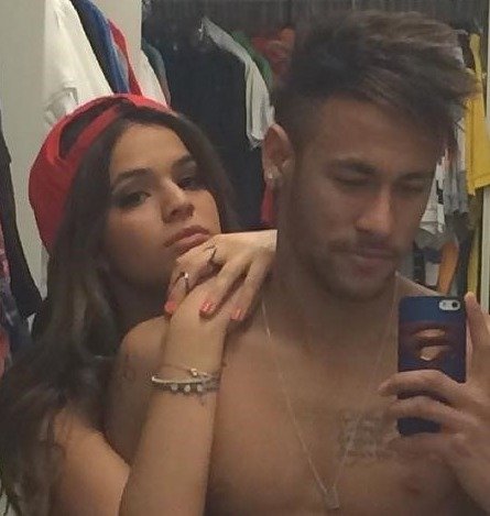 사진에는 네이마르가 상의를 탈의한 채 여자친구 마르케지니와 함께한 모습이 담겨 있다. 평범한 연인처럼 다정한 분위기가 인상적이다.