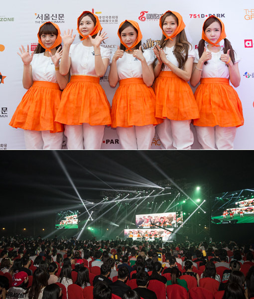 한국시간으로 14일 오후 8시 중국 베이징 751 D-park에서 열린 ‘한중 OST 콘서트’에 오른 그룹 크레용팝. 공연장을 찾은 2000여 명의 관객 중 유난히 많은 남자 팬들이 크레용팝을 응원했다. 사진제공|더그루브엔터테인먼트