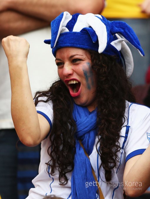 온두라스 여성 팬이 16일(한국시간) 브라질 포르투 알레그리의 에스타디오 베이라-리오 경기장에서 열린 2014 브라질 월드컵 E조 프랑스-온두라스 경기에서 응원전을 펼치고 있다.