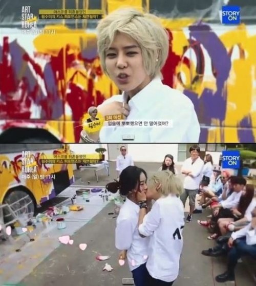 지난 15일 방송된 스토리온 '아트스타 코리아'에서 림수미의 이마 키스 퍼포먼스가 화두로 떠올랐다.