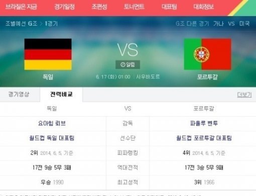 반면 포르투갈은 초대형 스타 크리스티아누 호날두가 버티고 있다. 최근 무릎 부상을 당했지만 호날두는 경기 하루 전날 열린 기자회견에서 “현재 내 컨디션은 100%다. 나 자신을 월드컵에서 불태울 준비가 됐다”는 말로 팬들의 우려를 잠재우며 출전 의지를 밝혔다.‘독일 포르투갈’ 소식을 접한 네티즌들은 “독일 포르투갈, 저 경기는 꼭 본다” “독일 포르투갈, 호날두 출전 기대된다” “독일 포르투갈, 최대 빅매치 중 하나” 등의 반응을 보였다.