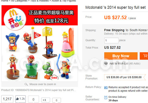 해피밀 슈퍼마리오 피규어 풀세트가 한 해외 사이트에서 판매되고 있어 눈길을 끈다.