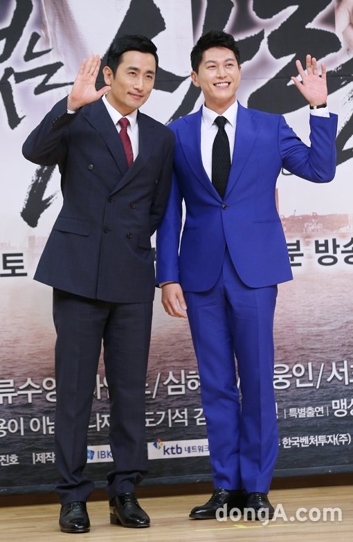 배우 차인표(왼쪽), 류수영이 16일 오후 서울 양천구 목동 SBS사옥에서 열린 새 주말드라마 ‘끝없는 사랑’의 제작발표회에서 포토타임을 하고 있다.