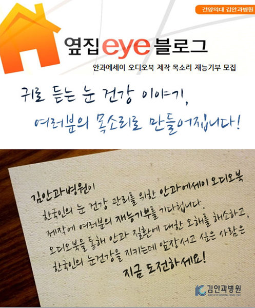 ● 김안과병원, 안과에세이 오디오북 재능 기부자 모집