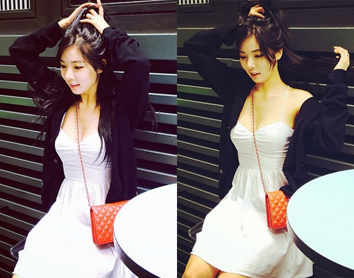 사진 속 현아는 한 카페에서 머리는 손질하는 모습이다. 또 다른 사진에서는 홍콩의 한 거리에서 다소 섹시한 눈빛으로 카메라를 응시하는 현아의 모습이 담겨 있다. 특히 블랙앤화이트 컬러 조합의 의상으로 섹시한 일상룩을 연출해 눈길을 끈다.