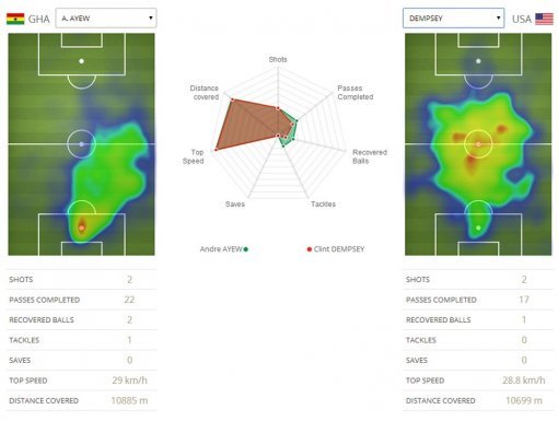 국제축구연맹(FIFA) 역시 이날 공식 트위터를 통해 아예우와 뎀프시의 경기 기록을 비교한 이미지를 공개하며 뎀프시의 활약에 주목했다.
