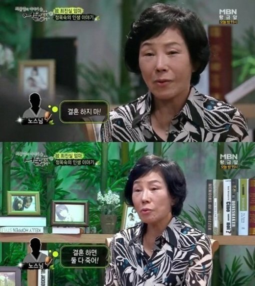 정 씨는 16일 방송된 MBN ‘힐링 토크쇼 어울림’에 출연해 최진실의 결혼을 준비하던 당시 점집을 찾은 이야기를 털어놨다.