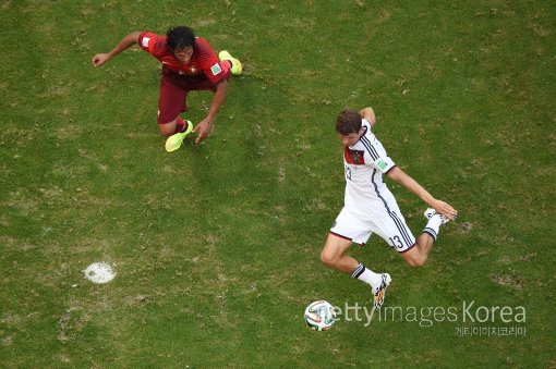 뮐러(독일)가 17일(한국시간) 브라질 사우바도르의 아레나 폰테 노바 경기장에서 열린 2014 브라질 월드컵 G조 독일전에서 자신의 두 번째 골을 성공시키고 있다.