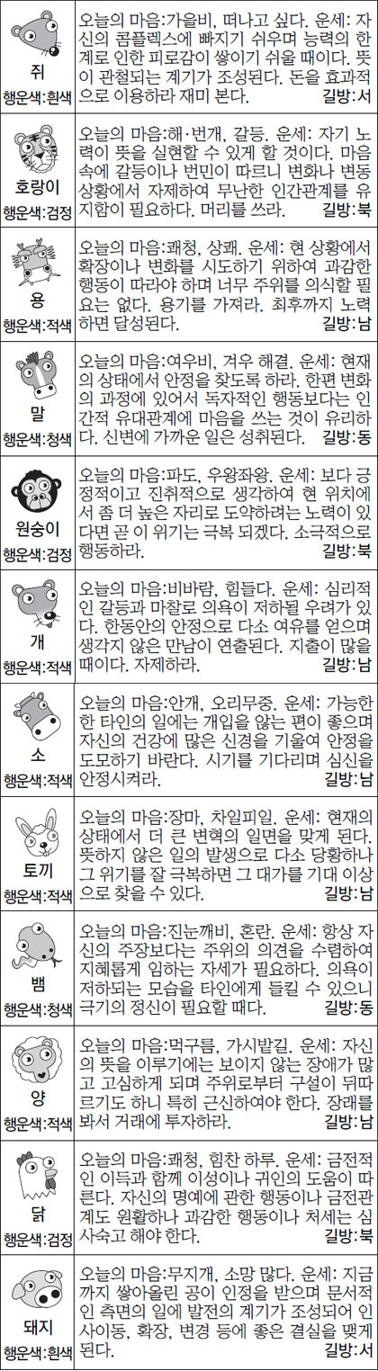 금일 주식, 부동산 매도 행운의 띠: 호랑이,말,개