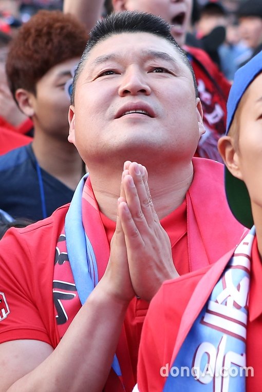 방송인 강호동이 18일 오전 서울 세종로 특설무대에서 진행된 '2014 브라질 월드컵 거리응원전'에서 응원을 펼치고 있다.