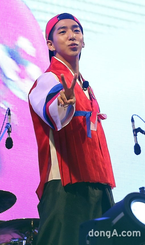 가수 바로가 18일 오전 서울 세종로 특설무대에서 진행된 '2014 브라질 월드컵 거리응원전'에서 응원을 펼치고 있다.