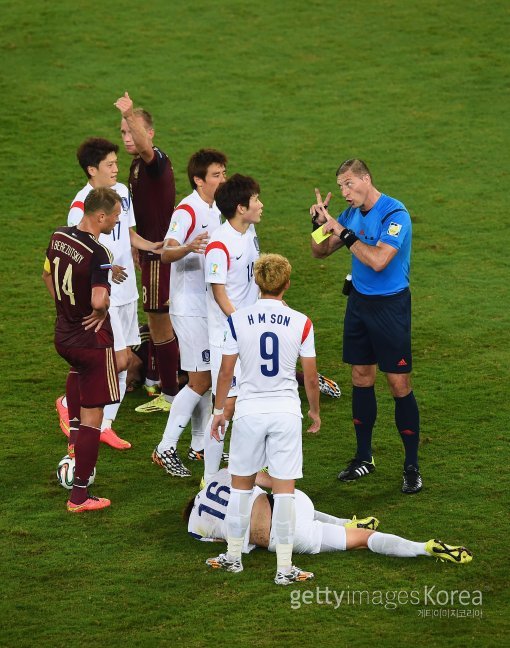 이번 브라질 월드컵에서는 옐로카드의 효력이 8강까지 누적된다. 이에따라 오는 23일 알제리 전에서는 손흥민, 기성용, 구자철의 경우 경고를 피하는 지혜로운 경기운영이 요구된다.