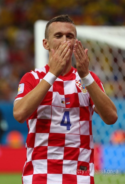 19일(한국시간) 브라질 마나우스의 아레나 아마조니아 경기장에서 열린 2014 브라질 월드컵 A조 예선 2차전 카메룬-크로아티아 경기. 이반 페리시치(크로아티아)가 후반 3분 추가골을 넣은 뒤 환호하고 있다.