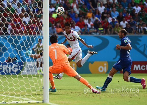 21일(한국시간) 브라질 헤시피의 아레나 페르남부쿠 경기장에서 열린 2014 브라질 월드컵 D조 이탈리아-코스타리카 경기. 코스타리카의 브라이언 루이스가 전반 44분 선제골을 넣고 있다.