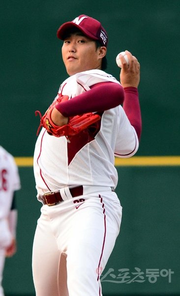 넥센 김영민(27)은 요즘 팀 불펜의 보배다. 한동안 바닥까지 가라앉았던 넥센 마운드를 다시 일으켜 세운 공신 가운데 한 명이다. 넥센 염경엽 감독도 연일 김영민 칭찬에 입에 침이 마른다. 21일 목동 SK전에서는 비로 45분간 경기가 중단된 상황에서도 흔들리지 않고 좋은 피칭을 해 박수를 받았다. 불과 한 달 전까지만 해도 부진 때문에 2군을 들락거렸던 투수답지 않다.