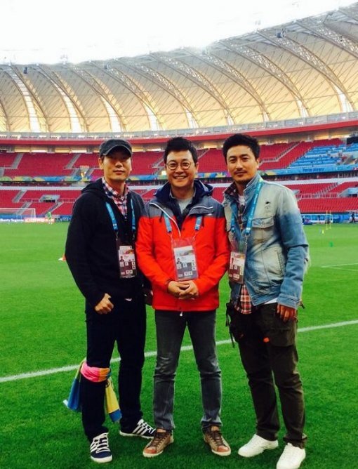 한국 축구 대표팀과 알제리의 2014 브라질 월드컵 조별리그 2차전을 앞두고 김성주 MBC 캐스터가 안정환, 송종국 해설위원과의 인증 사진을 게재해 화제다.