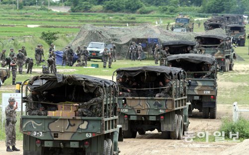 동부전선 일반전방소초(GOP)에서 총기를 난사한 임모 병장이 22일 탈영 후 군과 총격전까지 벌이면서 국민들은 충격과 불안에 빠졌다. 임 병장을 검거하기 위해 중무장한 병력들이 강원 고성군으로 집결하고 있다. 고성=홍진환 기자 jean@donga.com