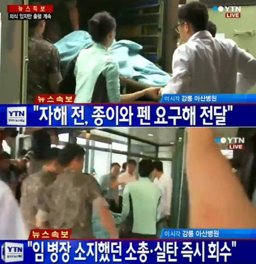 동부전선 최전방 GOP 총기 난사 사건을 일으키고 무장한 채 탈영한 임모 병장이 군과 대치 상황에서 자살을 시도해 병원으로 후송된 것으로 알려졌다.