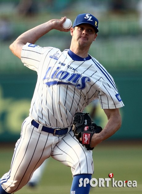 24일 오후 대구 시민야구장에서 열린 ‘2014 한국 야쿠르트 세븐 프로야구’ 삼성 라이온즈와 넥센 히어로즈의 경기에서 삼성 선발 밴 덴 헐크가 역투하고 있다.