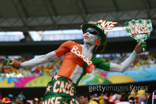 25일(한국시간) 브라질 포르탈레자의 에스타디오 카스텔라오 경기장에서 열린 2014 브라질 월드컵 조별리그 C조 최종 3차전 그리스-코트디부아르 경기에서 팬들이 열띤 응원을 하고 있다.