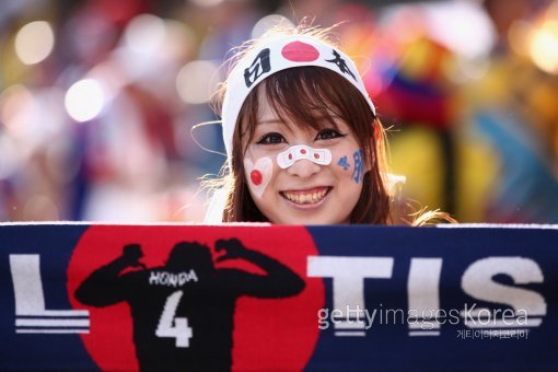 25일(한국시간) 브라질 쿠이아바의 아레나 판타날 경기장에서 열린 2014 브라질 월드컵 조별리그 C조 최종 3차전 일본-콜롬비아 경기에서 팬들이 열띤 응원을 하고 있다.
