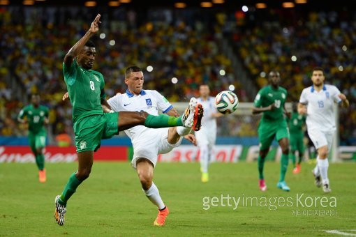 25일(한국시간) 브라질 포르탈레자의 에스타디오 카스텔라오 경기장에서 열린 2014 브라질 월드컵 조별리그 C조 최종 3차전 그리스-코트디부아르 경기 장면.