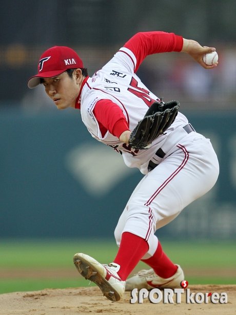 26일 오후 광주-기아 챔피언스 필드에서 열린 ‘2014프로야구’ KIA 타이거즈와 SK 와이번스의 경기에서 KIA 김병현이 투구하고 있다. 4번째 선발 등판하는 김병현은 지난 21일 잠실 두산전에서 5이닝 4피안타 2실점으로 행운의 강우콜드 완투승을 거둬 1승을 기록하고 있다.