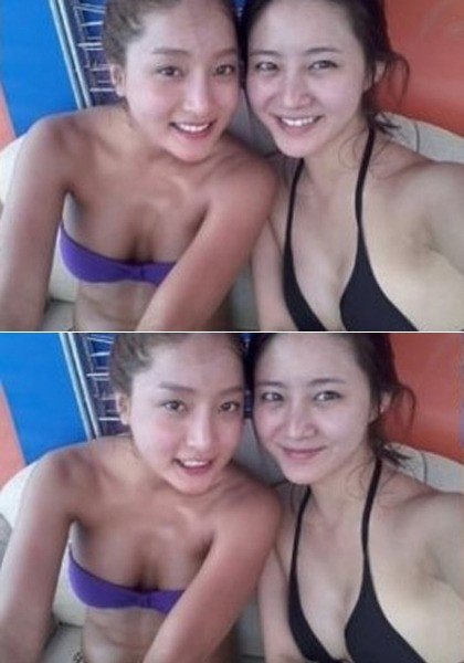 배우 한그루와 가수 소리의 비키니 투샷에 누리꾼들의 관심이 집중됐다.