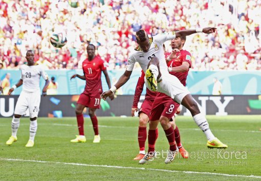 27일(한국시간) 브라질 브라질리아의 에스타디오 나시오날 데 브라질리아 경기장에서 열린 2014 브라질 월드컵 조별리그 G조 최종 3차전 포르투갈-가나 경기. 가나의 존 보예가 전반 31분 자책골을 기록하고 있다.