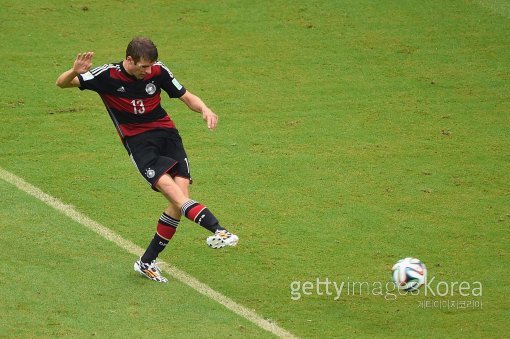 독일의 토마스 뮐러(가운데)가 후반 10분 선제골을 넣은 뒤 환호하고 있다. 이번 대회 개인 4호골.