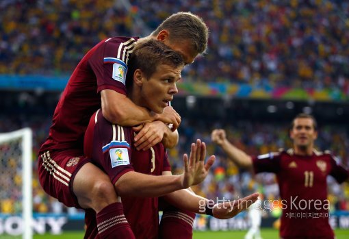 러시아의 알렉산드르 코코린이 전반 6분 선제골을 넣은 뒤 세리머니를 하고 있다.