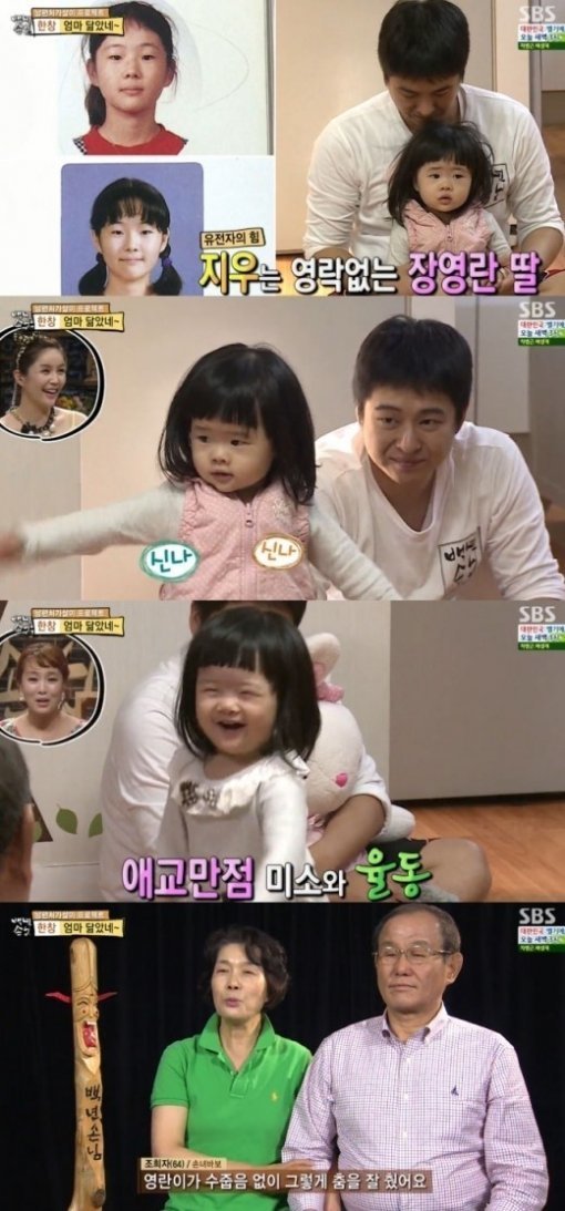 지우는 엄마 장영란을 꼭 닮은 깜찍한 외모로 애교를 선보여 가족들을 즐겁게 했다.