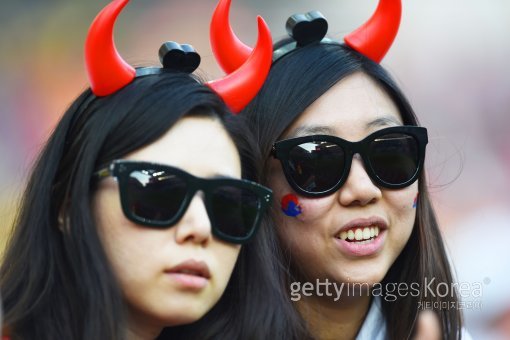한국 여성팬들이 27일 오전5시(한국시간)브라질 상파울루의 아레나 코린치안스에서 열린 2014 브라질월드컵 조별리그 H조 3차전 알제리와의 경기를 응원하고 있다.