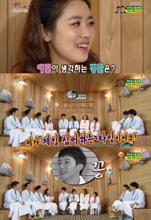 그러자 허경환은 "처음에는 아나운서에 대한 호기심이 있었다. 그러다 시간이 지나 가애란 화장도 지워지고, 지치기도 했다. 나부터 살아야겠다는 생각이 들었다"고 변명해 폭소케했다. 이어 가애란은 "그 때 깨달았다. 삶이 힘들면 날 버릴 남자다"고 맞받아쳤다.