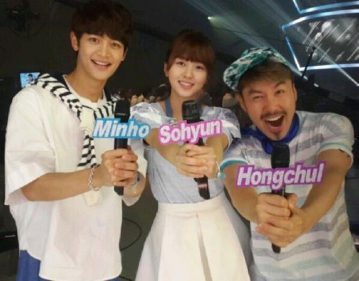 공개된 사진에는 ‘음악중심’의 3MC인 민호, 김소현, 노홍철의 모습이 담겨 있다. 노홍철은 이날 방송을 끝으로 ‘음악중심’에서 하차했다. 그는 “1년 넘게 진행을 해서 아쉽지만 정말 감사하다. 많이 배워서 간다. 또 10대 김소현의 순수함과 20대 민호의 열정에 감탄했다”고 소감을 밝혔다.
