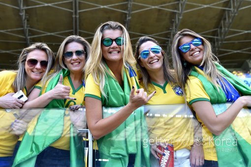 29일(한국시간) 브라질 벨루오리존치의 에스타디오 미네이랑 경기장에서 열린 2014 브라질 월드컵 16강전 브라질-칠레 경기에서 팬들이 열띤 응원을 하고 있다.