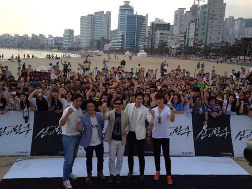 배우 정우성을 비롯해 안성기, 김인권, 안길강과 최진혁은 29일 부산 광안리에 쇼케이스를 열고 팬들과 만남의 시간을 가졌다.