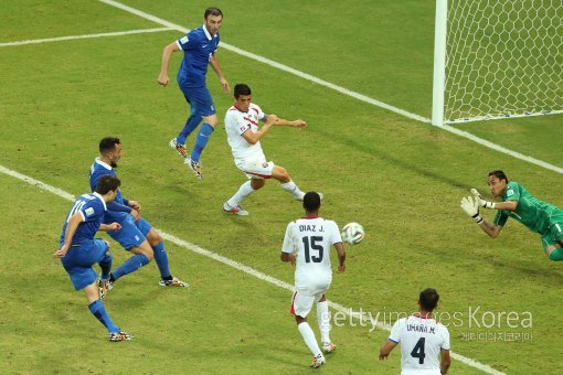 30일(한국시간) 브라질 헤시피의 아레나 페르남부쿠 경기장에서 열린 2014 브라질 월드컵 16강전 코스타리카-그리스 경기.