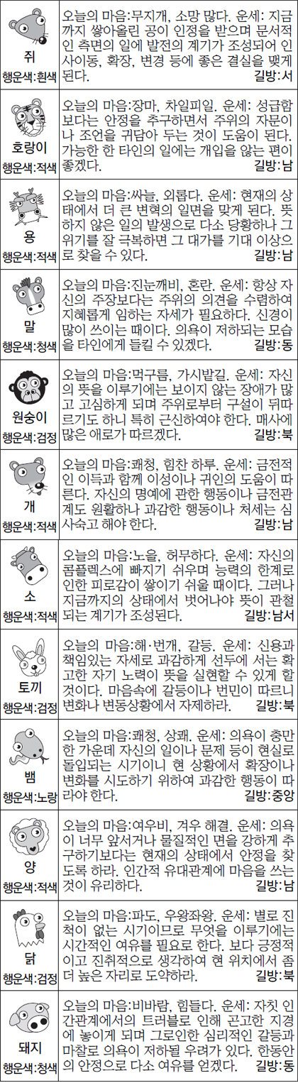 금일 복권, 주식, 부동산 매입 행운의 띠: 호랑이,말,개
